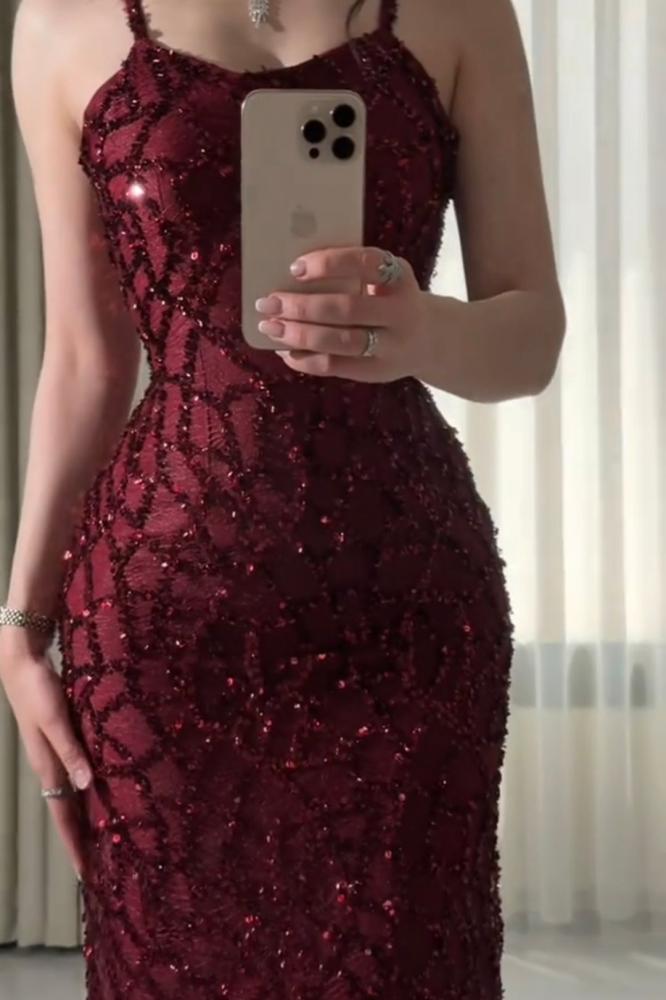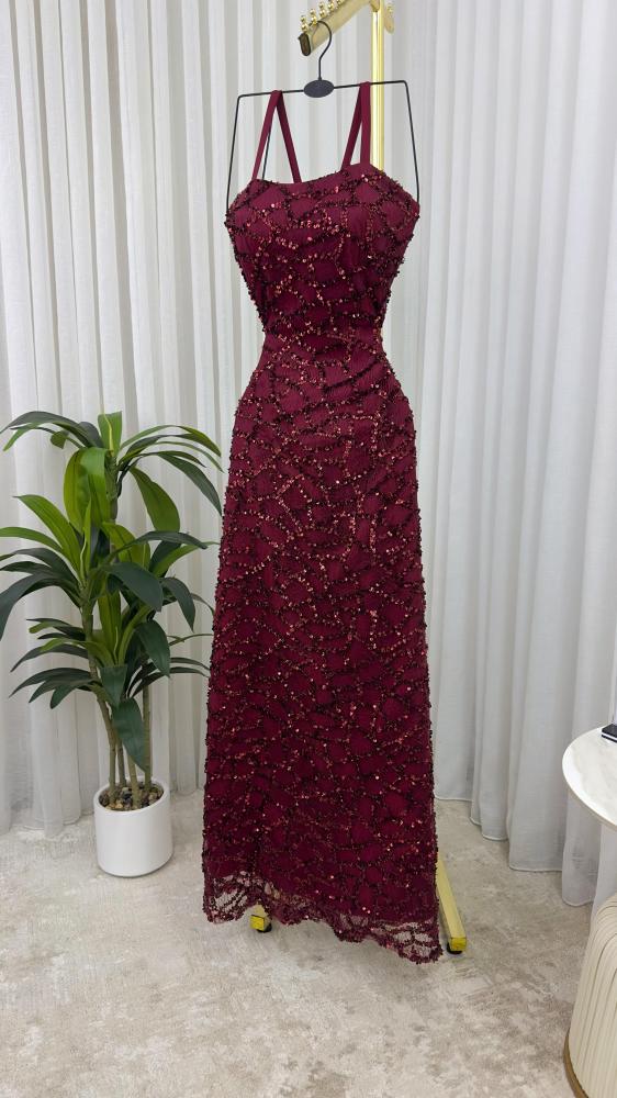 فستان سهره عنابي تطريز