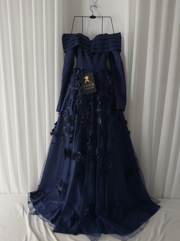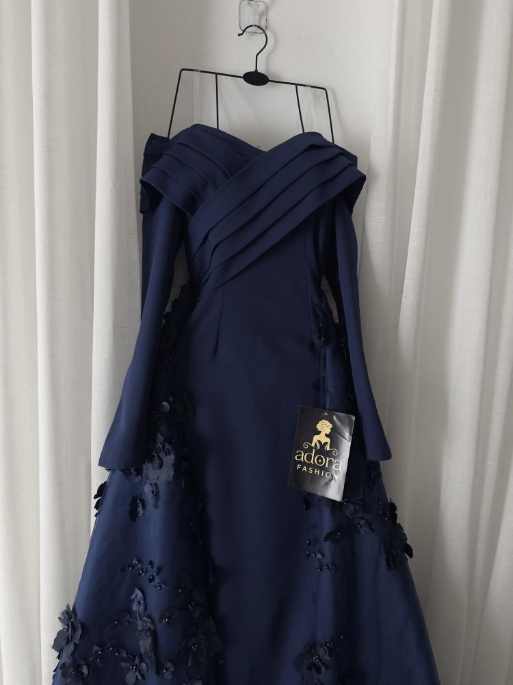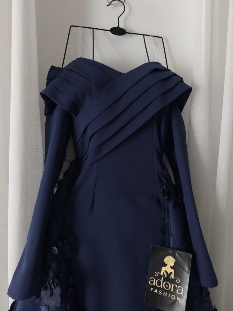 فستان سهرة اكمام طويل كحلي