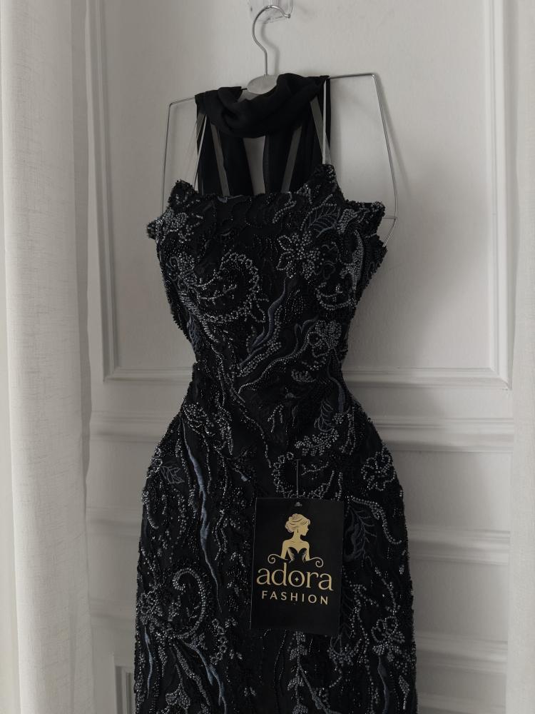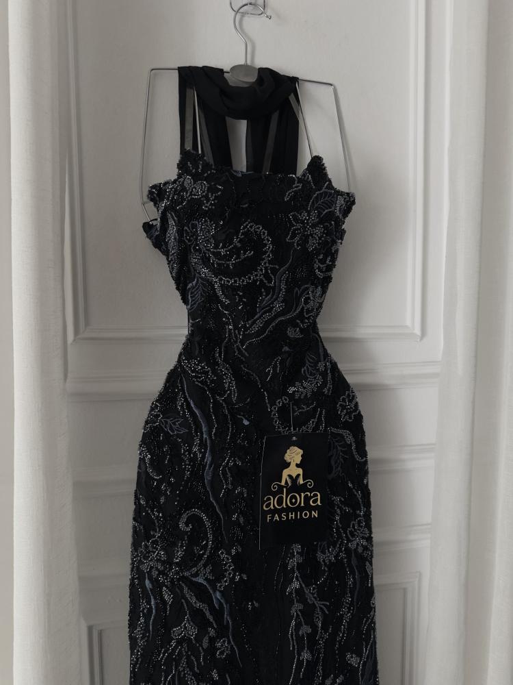 فستان سهره اسود تطريز كامل مع شال
